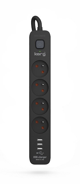 Listwa zasilająca KERG z wyłącznikiem-4 gniazda 3USB 16A 1,5m czarny