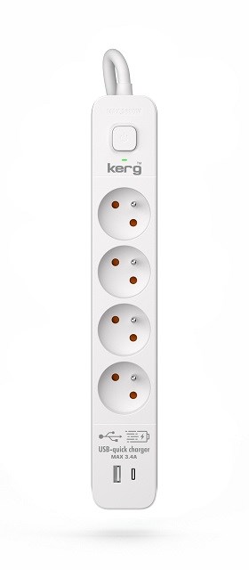 Listwa zasilająca KERG z wyłącznikiem-4 gniazda USBC+USBA 16A 3m ; czarny
