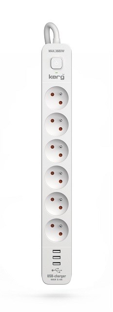 Listwa zasilająca KERG z wyłącznikiem-6 gniazd USBC+USBA 16A 1,5m